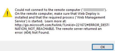Bu hata benim en çok vaktimi alan hata oldu, her şey yüklü, servisler çalışıyor, publish profile doğru, fakat bu hatayı alıyordum. Bir çok farklı kaynaktan okuyarak ve yukarıdaki her bir step’i ve onun gerekliliğini farklı bir yazıdan tespit ederek olması gereken güncel kurulum yolunu bu şekilde belirledim. Eğer bu hatayı alıyorsanız lütfen başa dönün ve tüm adımları yukarıdaki sıra ile uygulayın. Eğer hata almaya devam ederseniz, firewall’unuzu devre dışı bırakın ve tekrar deneyin. Başarılı olursanız sorunun firewall kaynaklı olduğunu tespit etmiş olursunuz. Değilse başka bir yerde aramanız gerekiyordur.