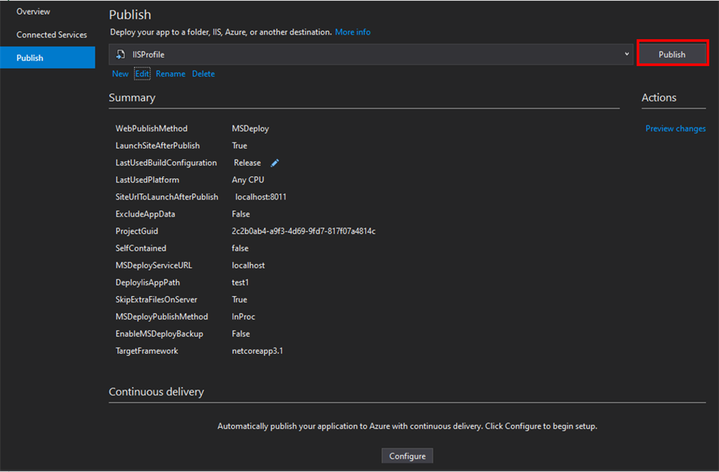 6 – Visual studio içerisinden projeniz için publish profile oluşturun.