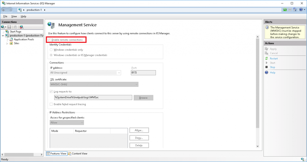 4 – IIS Management Services’in uzak bağlantıları kabul etmesine izin verin.
