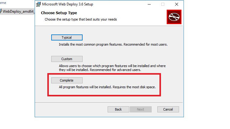 - Management service kurulumunu kontrol edin ve Web Deploy uygulamasını Complete olacak şekilde yeninden kurmayı deneyin.